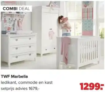 De prijs van de TWF Marbella kan ook teruggevonden worden hierboven op de pagina, samen met de datum van wanneer de aanbieding beschikbaar is. Ook kun je de prijzen in de huidige Baby-Dump folder of op de Baby-Dump website controleren. De aanbiedingen verzekeren je van het kopen van de Baby-Dump producten voor de laagste prijs.