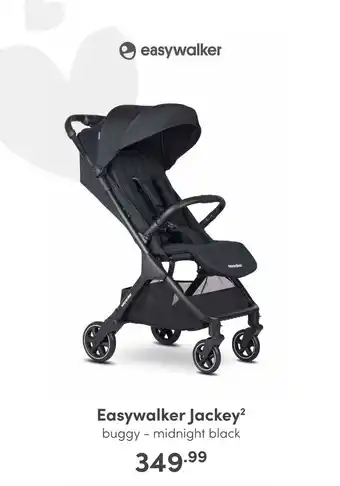 De Easywalker Jackey² buggy in de kleur midnight black is de perfecte combinatie van stijl en functionaliteit. Met zijn lichtgewicht ontwerp en compacte formaat is deze buggy ideaal voor onderweg. De buggy is voorzien van een verstelbare rugleuning en voetensteun, zodat je kindje altijd comfortabel zit of ligt. Daarnaast heeft de Easywalker Jackey² buggy een ruime boodschappenmand en handige opbergvakken voor al je spullen. Dankzij de zwenkwielen aan de voorkant is de buggy eenvoudig te manoeuvreren, zelfs op oneffen terrein. Met de Easywalker Jackey² buggy ben je altijd klaar voor een uitje met je kleintje. Bestel hem nu voor slechts 349.99 en geniet van het gemak en comfort dat deze buggy biedt.