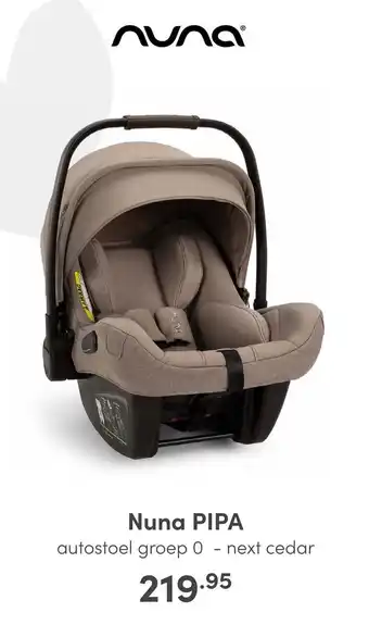 De aanbieding is verkrijgbaar in verschillende winkels, bekijk alle producten om de goedkoopste Nuna PIPA te krijgen. Als je graag wilt kijken of het artikel met meer korting te koop is in een andere winkel, bekijk de categorie 'Baby en Kind'. Wellicht vind je deze aanbiedingen ook interessant: Nuna PIPA Next Autostoel, Nuna TODL & Nuna MIXX Next.