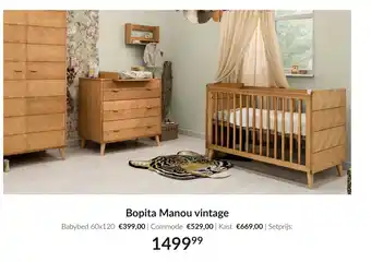 De aanbieding is verkrijgbaar in verschillende winkels, bekijk alle producten om de goedkoopste Bopita Manou vintage Set te krijgen. Als je graag wilt kijken of het artikel met meer korting te koop is in een andere winkel, bekijk de categorie 'Baby en Kind'. Wellicht vind je deze aanbiedingen ook interessant: Bopita Heya ledikant Set, Bopita Vieve dune set & Bopita Oliver off-white set.