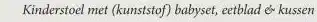 Kinderstoel met (kunststof) babyset, eetblad & kussen
