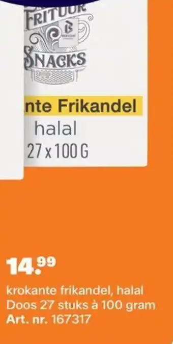 krokante frikandel, halal Doos 27 stuks à 100 gram Art. nr. 167317