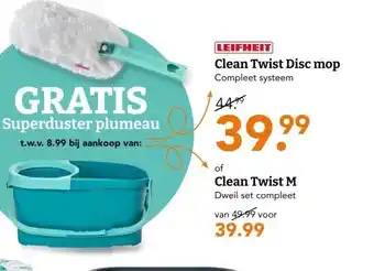 De prijs van de Clean Twist Disc mop kan ook teruggevonden worden hierboven op de pagina, samen met de datum van wanneer de aanbieding beschikbaar is. Ook kun je de prijzen in de huidige Blokker folder of op de Blokker website controleren. De aanbiedingen verzekeren je van het kopen van de Blokker producten voor de laagste prijs.