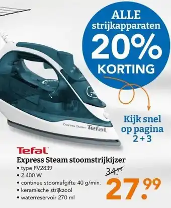 De aanbieding is verkrijgbaar in verschillende winkels, bekijk alle producten om de goedkoopste Express Steam stoomstrijkijzer te krijgen. Als je graag wilt kijken of het artikel met meer korting te koop is in een andere winkel, bekijk de categorie 'Wonen'. Wellicht vind je deze aanbiedingen ook interessant: Tefal Express Steam FV2837 Stoomstrijkijzer, Stoomstrijkijzer & Tefal Stoomstrijkijzer.