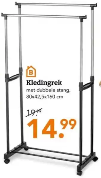 De Kledingrek is momenteel met korting verkrijgbaar bij Blokker. Hier vind je alle details over prijs, geldigheidsduur en actievoorwaarden. Vergeet niet om ook andere aanbiedingen en deals voor Kledingrek te bekijken zodat je zeker weet dat je de beste prijs betaalt. De kortingsactie loopt van 20-04-2026 tot 10-05-2026. Is de actie inmiddels verlopen? Geen zorgen, vergelijk dan soortgelijke aanbiedingen of volg de productcategorie voor toekomstige prijsverlagingen. Zo koop je altijd met voordeel.Veelgestelde vragen over Kledingrek