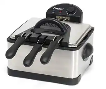 Nu in de aanbieding bij Bol.com: Bestron Frituurpan 4.5 liter - DF402B - Frituese 2000W - 1 grote, 2 kleine manden, kijkvenster - RVS✅ Actie geldig van 14-03 t/m 21-04.