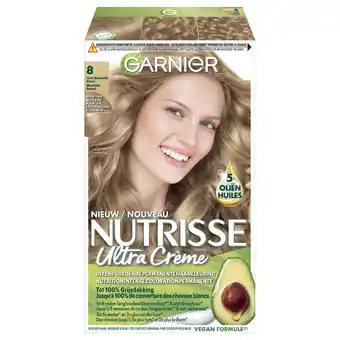 Nu in de aanbieding bij Bol.com: Garnier Nutrisse Ultra Crème 8 Lichtlond - Intens voedende permanente haarkleuring✅ Actie geldig van 18-04 t/m 24-04.
