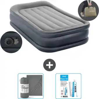 Intex Luchtbed - 1-Persoons - 99 x 191 x 42 cm - Grijs - Inclusief pomp - Hoeslaken en Reparatieset aanbieding bij Bol.com