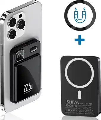 ISHIVA MagSafe Powerbank 5000 mAh - Powerbank USB-C - Snellader 22.5W - 2 jaar Garantie - Zwart aanbieding bij Bol.com – binnenkort verwacht