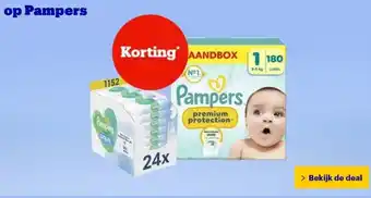 Bol.com biedt naast de op Pampers een ruime collectie producten aan. Houd de wekelijkse Bol.com folder in de gaten om de beste aanbiedingen en acties te vinden. Naast op Pampers, kunt u ook de volgende aanbiedingen vinden: Pampers, Pampers & Pampers.