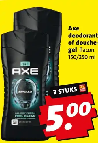 De aanbieding is verkrijgbaar in verschillende winkels, bekijk alle producten om de goedkoopste Axe deodorant of douchegel te krijgen. Als je graag wilt kijken of het artikel met meer korting te koop is in een andere winkel, bekijk de categorie 'Supermarkt'. Wellicht vind je deze aanbiedingen ook interessant: Axe deodorant of douchegel, Axe Apollo 3-In-1 Douchegel & Axe africa 3-in-1 douchegel.