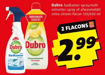 Met Dubro Multi Ontvetter Spray krijg je de badkamer weer glanzend schoon. Deze krachtige formule is super effectief tegen vet en laat geen strepen achter. De handige flacons bevatten elk 550/650 ml afwasmiddel met extra citroen, waardoor je langdurig kunt genieten van een frisse geur. Nu tijdelijk met 10% extra korting op de normale prijs van €2.99 per stuk. Profiteer van deze aanbieding en haal Dubro in huis voor een stralend schone badkamer. Bestel snel en gemakkelijk online en ervaar zelf de kwaliteit van Dubro. Maak schoonmaken een stuk eenvoudiger met Dubro!