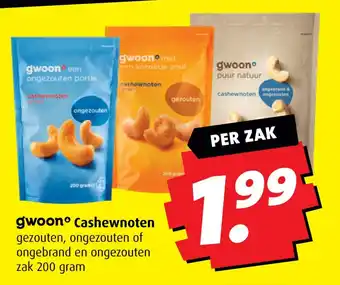 Gwoono Cashewnoten ongezouten zak 200 gram
