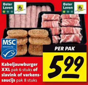 Kabeljauwburger XXL of slavink of varkenssaucijs korting bij Boni