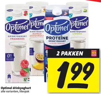 Geniet van de heerlijke smaken van Optimel drinkyoghurt in alle varianten, waaronder mango, aardbei banaan, limoen en framboos. Deze drinkyoghurt bevat 0% vet en is rijk aan proteïne. Nu verkrijgbaar inclusief 10% extra korting op 2 pakken, voor slechts €1.99 per literpak. Met Optimel drinkyoghurt haal je een verfrissende en gezonde drank in huis, perfect voor elk moment van de dag. Of je nu kiest voor de exotische smaak van mango of de zoete combinatie van aardbei en banaan, deze drinkyoghurt is een verantwoorde keuze voor op een warme zomerdag. Probeer nu de verschillende smaken en ontdek jouw favoriet!
