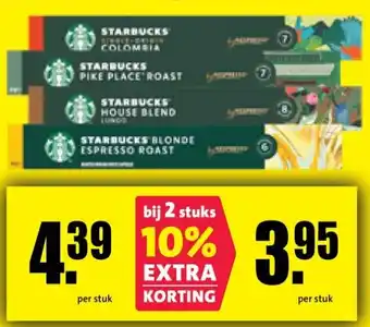 Starbucks koffie: keuze uit Pike Place Roast, House Blend Lungo of Blonde Espresso Roast
