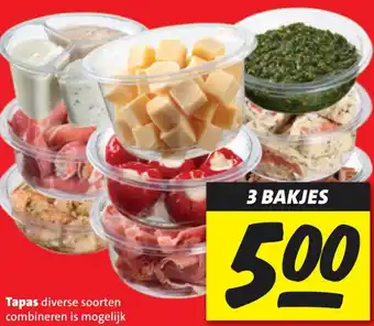 Tapas diverse soorten in 3 bakjes voor 5.00