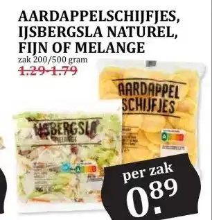 Nu in de aanbieding bij Boon`s Markt: AARDAPPELSCHIJFJES, IJSBERGSLA NATUREL, FIJN OF MELANGE✅ Actie geldig van 9-03 t/m 15-03.