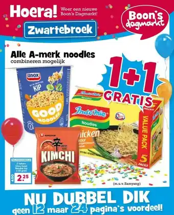 De prijs van de Alle A-merk noodles kan ook teruggevonden worden hierboven op de pagina, samen met de datum van wanneer de aanbieding beschikbaar is. Ook kun je de prijzen in de huidige Boon`s Markt folder of op de Boon`s Markt website controleren. De aanbiedingen verzekeren je van het kopen van de Boon`s Markt producten voor de laagste prijs.