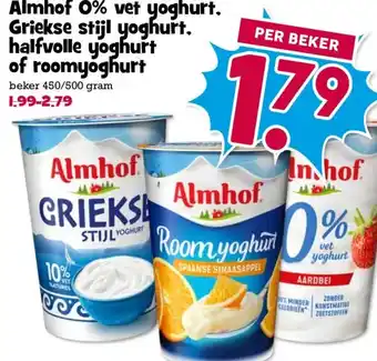 Nu in de aanbieding bij Boon`s Markt: Almhof 0% vet yoghurt. Griekse stijl yoghurt, halfvolle yoghurt of roomyoghurt✅ Actie geldig van 20-04 t/m 26-04.