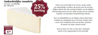De aanbieding is verkrijgbaar in verschillende winkels, bekijk alle producten om de goedkoopste Ambachtelijke roombrie te krijgen. Als je graag wilt kijken of het artikel met meer korting te koop is in een andere winkel, bekijk de categorie 'Supermarkt'. Wellicht vind je deze aanbiedingen ook interessant: Ambachtelijke roombrie, Ambachtelijke roombrie & Roombrie 180g.