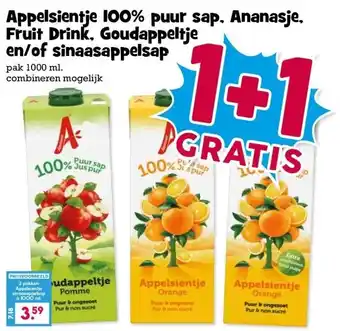 Koop Appelsientje 100% puur sap. Ananasje, Fruit Drink, Goudappeltje en/of sinaasappelsap komende week met korting