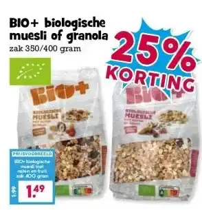 BIO+ biologische muesli of granola korting bij Boon`s Markt