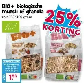 BIO+ biologische muesli of granola korting bij Boon`s Markt