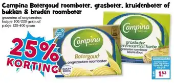 Campina Botergoud roomboter, grasboter, kruidenboter of bakken & braden roomboter aanbieding en online acties bij Boon`s Markt