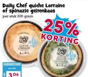 Daily Chef quiche Lorraine of spinazie geitenkaas aanbieding bij Boon`s Markt