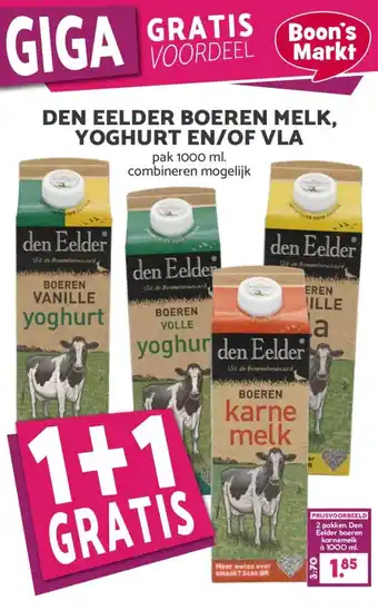 Boon`s Markt DEN EELDER BOEREN MELK, YOGHURT EN/OF VLA aanbieding