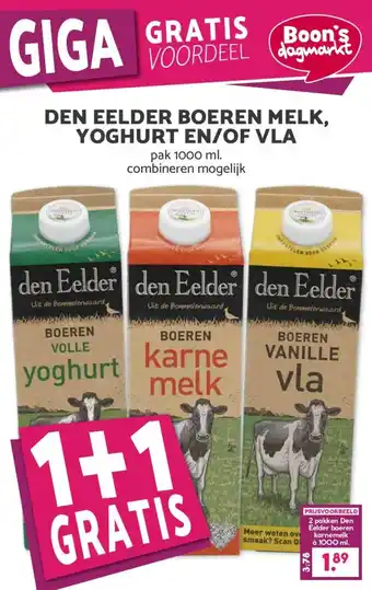 DEN EELDER BOEREN MELK, YOGHURT EN/OF VLA aanbieding bij Boon`s Markt