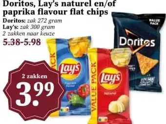 Doritos, Lay's naturel en/of paprika flavour flat chips aanbieding bij Boon`s Markt