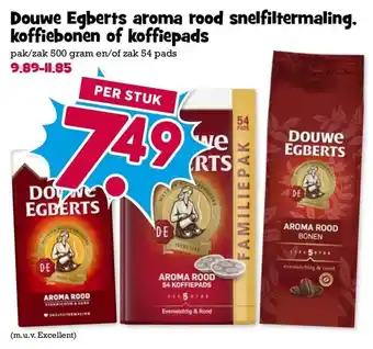 Douwe Egberts aroma rood snelfiltermaling. koffiebonen of koffiepads aanbieding en online acties bij Boon`s Markt