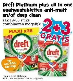 Dreft Platinum plus all in one vaatwastabletten anti-matt en/of deep clean aanbieding en online acties bij Boon`s Markt