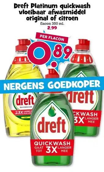 Koop Dreft Platinum quickwash vloeibaar afwasmiddel original of citroen komende week met korting
