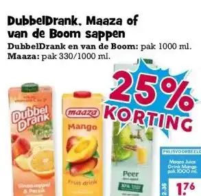 DubbelDrank, Maaza of van de Boom sappen aanbieding bij Boon`s Markt