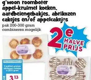 g'woon roomboter appel-kruimel koeken. aardbeiengebakjes, abrikozen cakejes en/of appelcakejes aanbieding bij Boon`s Markt