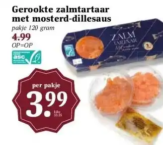 Gerookte zalmtartaar met mosterd-dillesaus aanbieding bij Boon`s Markt