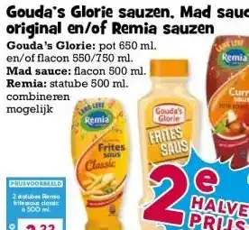 Gouda's Glorie sauzen, Mad sauce original en/of Remia sauzen korting bij Boon`s Markt