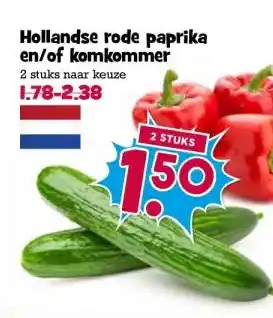 Koop Hollandse rode paprika en/of komkommer komende week met korting