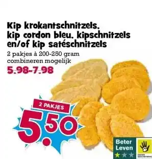 Kip krokantschnitzels. kip cordon bleu, kipschnitzels en/of kip satéschnitzels aanbieding en online acties bij Boon`s Markt