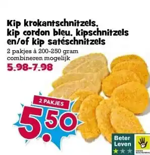 Kip krokantschnitzels. kip cordon bleu, kipschnitzels en/of kip satéschnitzels aanbieding en online acties bij Boon`s Markt