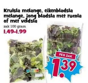 Koop Krulsla melange, eikenbladsla melange, jong bladsla met rucola of met veldsla komende week met korting