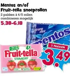 Mentos en/of Fruit-tella snoeprollen aanbieding en online acties bij Boon`s Markt