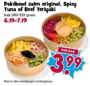 Koop Pokébowl zalm original. Spicy Tuna of Beef Teriyaki komende week met korting