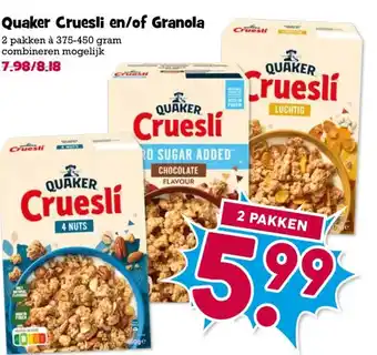 Quaker Cruesli en/of Granola aanbieding en online acties bij Boon`s Markt