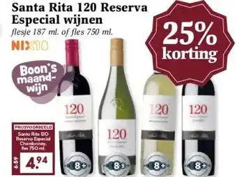 Nu in de aanbieding bij Boon`s Markt: Santa Rita 120 Reserva Especial wijnen✅ Actie geldig van 22-12 t/m 26-12.