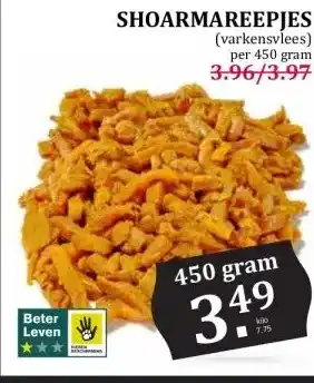 De prijs van de SHOARMAREEPJES kan ook teruggevonden worden hierboven op de pagina, samen met de datum van wanneer de aanbieding beschikbaar is. Ook kun je de prijzen in de huidige Boon`s Markt folder of op de Boon`s Markt website controleren. De aanbiedingen verzekeren je van het kopen van de Boon`s Markt producten voor de laagste prijs.