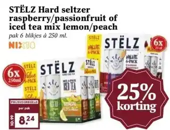 STËLZ Hard seltzer raspberry/passionfruit of iced tea mix lemon/peach aanbieding bij Boon`s Markt